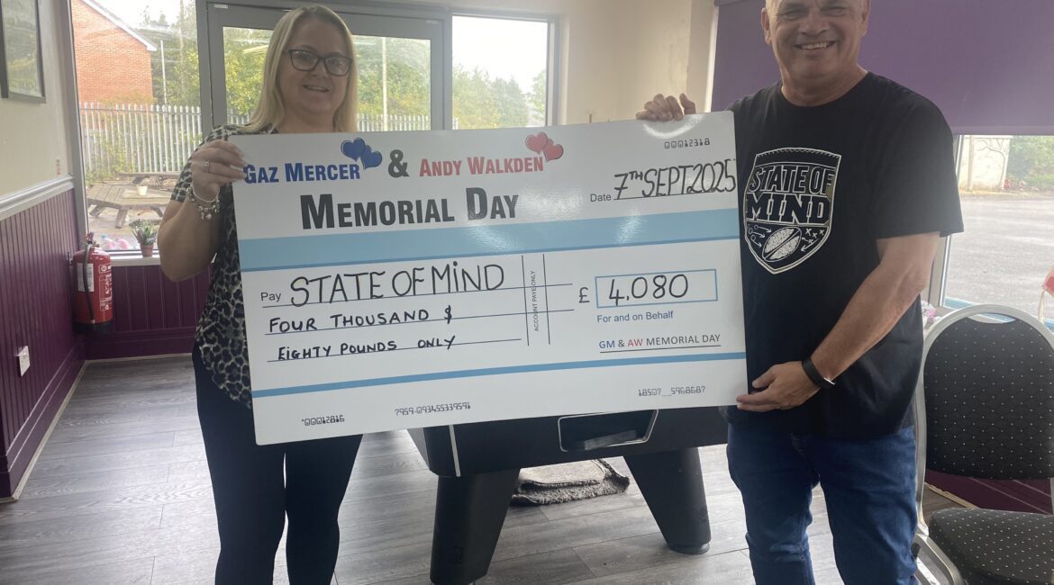 State of Mind were honoured to be the recipient of duns raised at the annual Memorial Day event at Bold Miners FC in St Helens